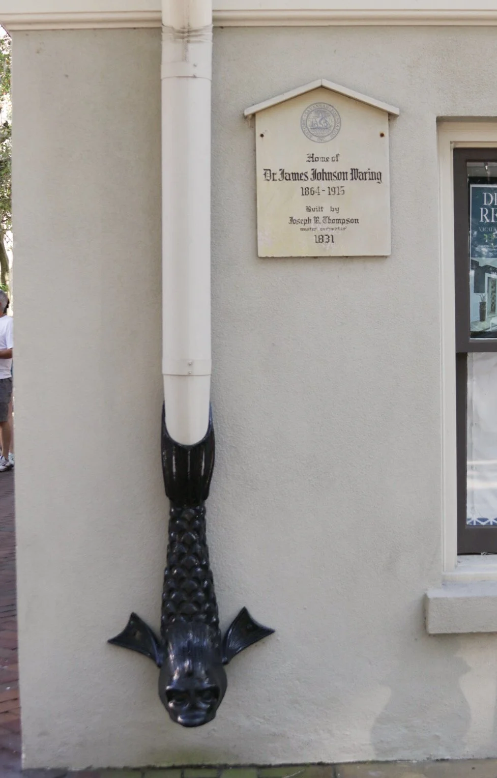 Once the home of a doctor, this building with its fish spouts is now a real estate office